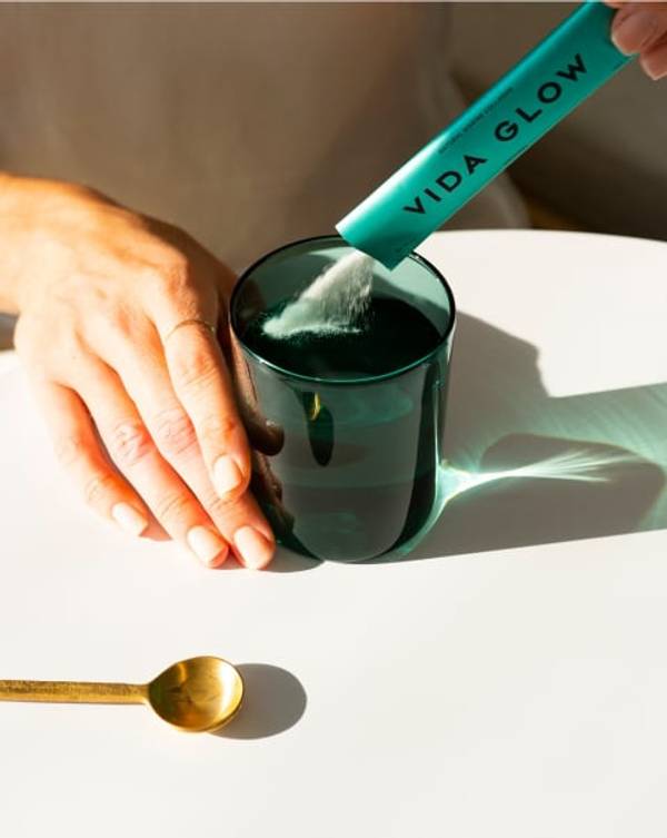 “A lot of people don’t know about it or they feel like it’s just another supplement, but the science is unequivocal. Hydrolysed marine collagen is superior to other collagens because the component parts, peptides and amino acids, are made so small that they cross through the gut and into the bloodstream. They’re more bioavailable, soluble and palatable. What I love about Vida Glow is that it’s safe and well tolerated, which means I can recommend it with confidence.”